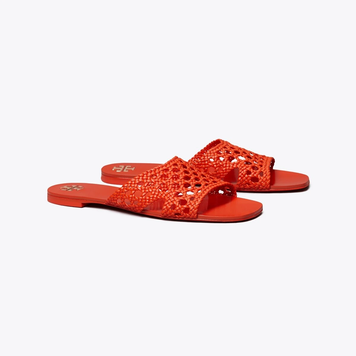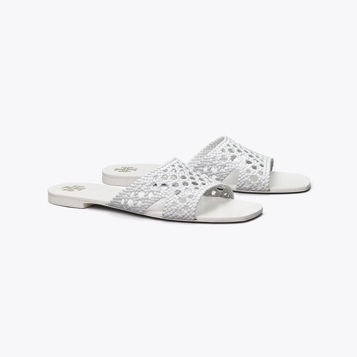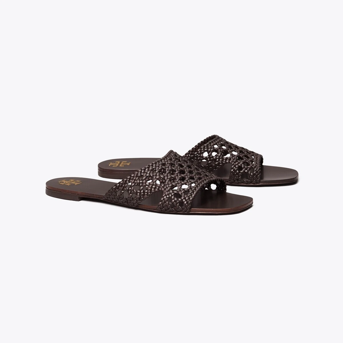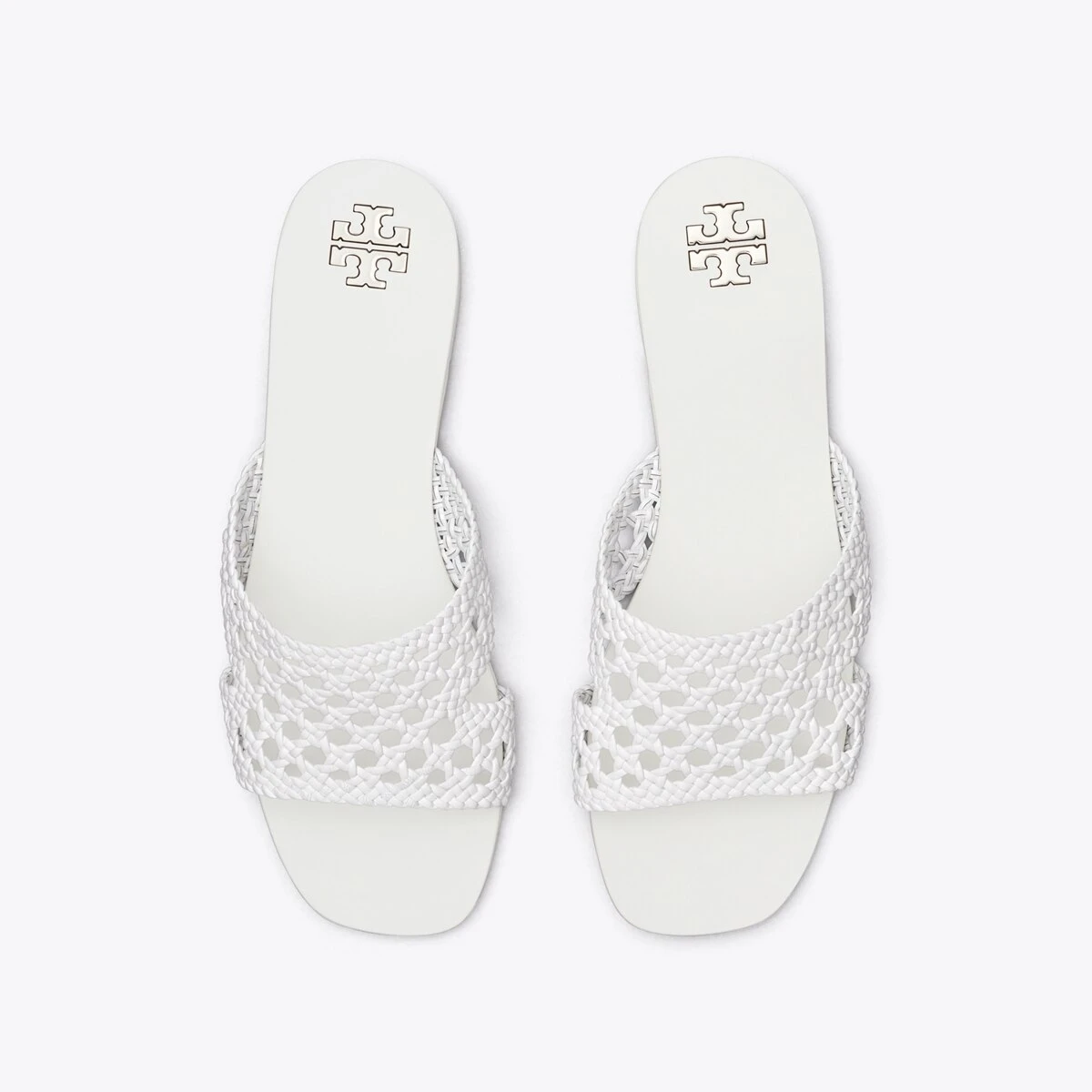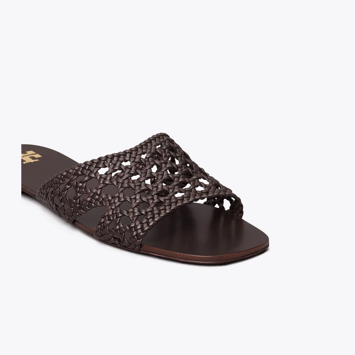 A classic slide is beautifully crafted with a hand-woven leather upper, creating an elegant pairing of texture and minimalism.